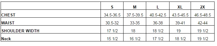 - Sizing chart
