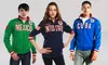 Mondetta’s collection of unisex track jackets proudly displays soccer allegiances with handcrafted felt and embroidered detailing. Brightly colored panels of polyester-bonded fabric act as the backdrop for country names and detailed coats of arms and flags. Elastic-trimmed collars, sleeves, and waistbands fortify the jackets against chilly breezes and roving fire ants.