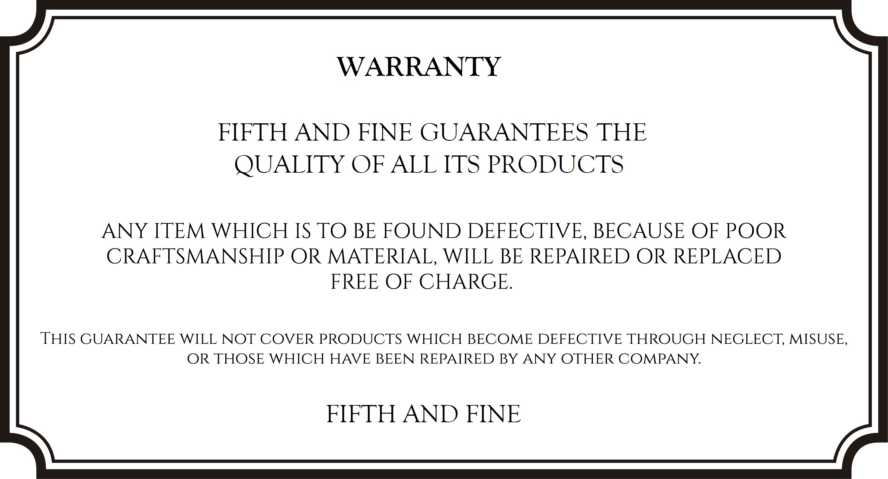 - Warranty: 30 days parts warranty provided by FIFTH AND FINE.