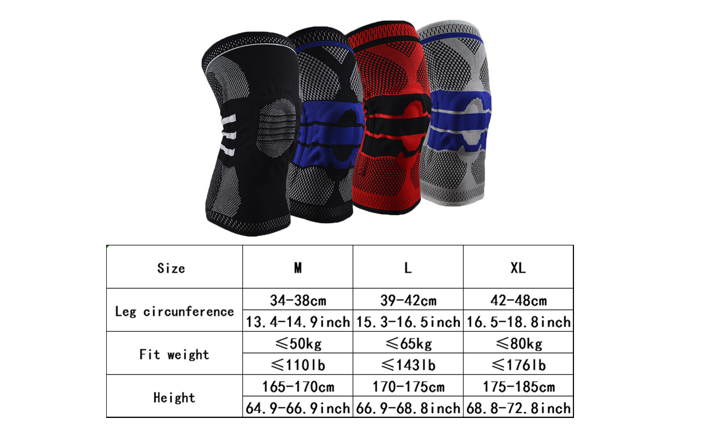 1Pcs Sports Knee Support Pad High Compression Silicone Padded Knee Sleeve Brace Red M