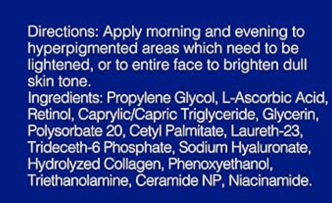 - Formulated with retinol, collagen, vitamin C, hyaluronic acid, and Niacinamide