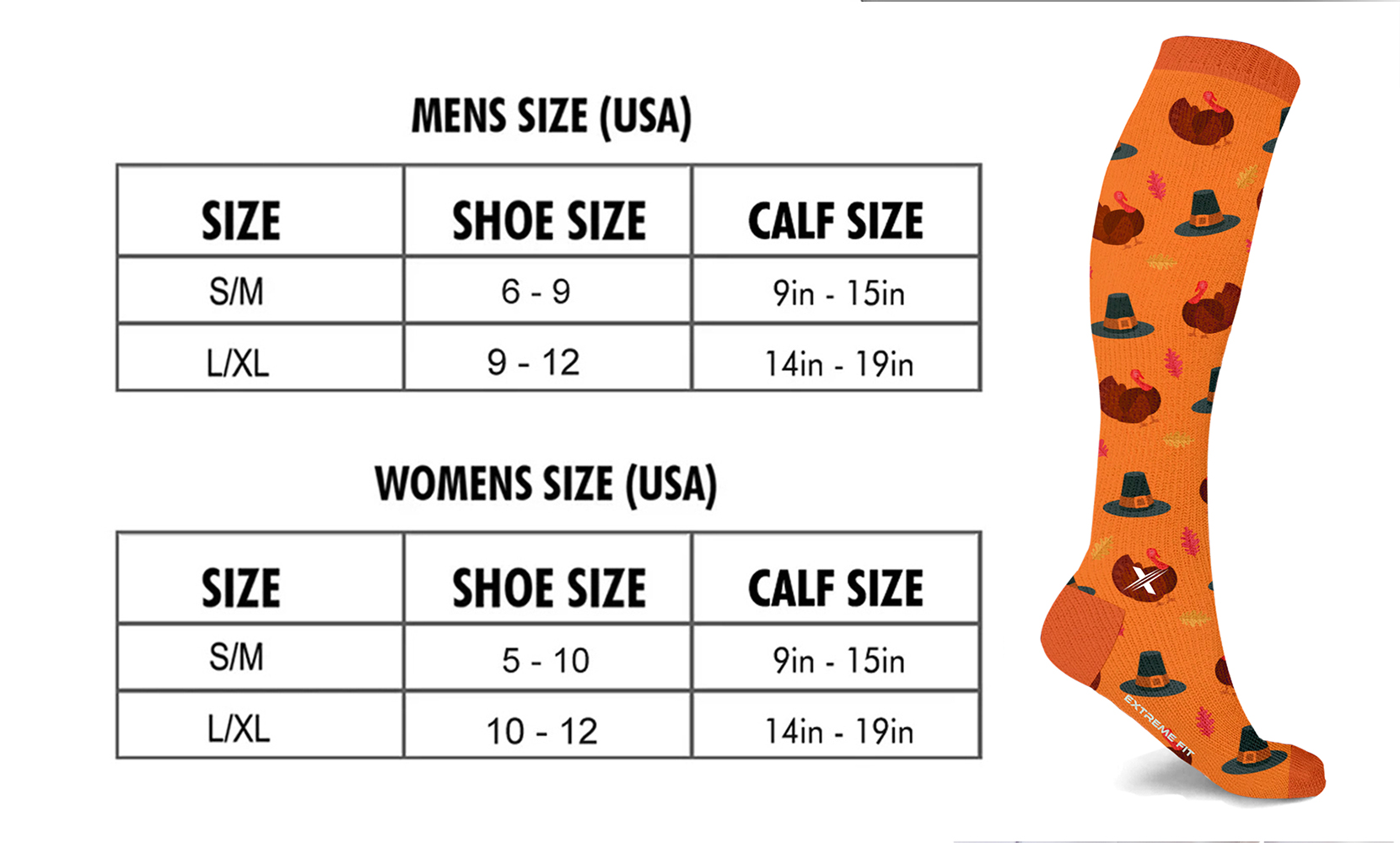 3-Pairs : Christmas or Thanksgiving Holiday Joy Knee High Compression Socks Thanksgiving Small/Medium