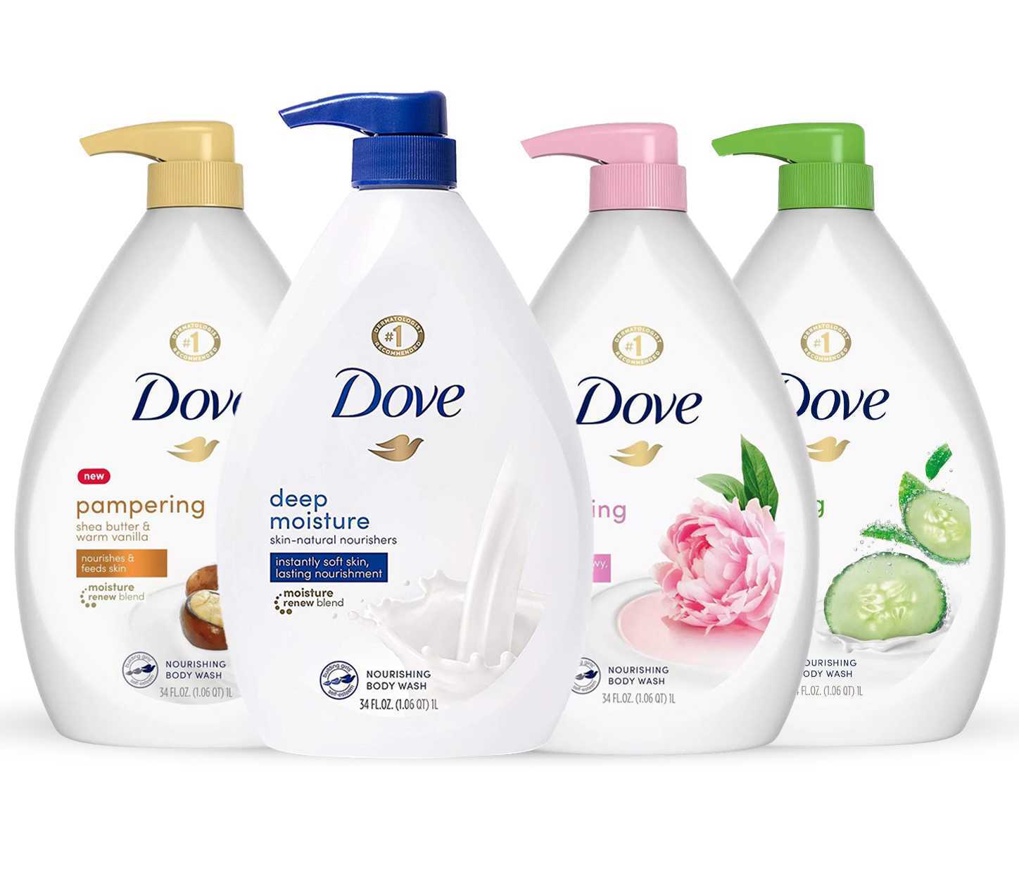 Dove Body Wash with Pump Assorted Scents 27oz (4 Pack) About the BrandDove prioritizes providing trustworthy skin and hair care products. However, their commitment extends beyond just their offerings. They advocate for a redefined beauty standard that embraces all women. Dove aims to foster positive body image and self-esteem. They are dedicated to sustainable practices, focusing on environmentally friendly production methods and minimizing their impact on the planet.BenefitsWorks to nourish and moisturize the bodyHelps your skin retain its moisture levelsAims to minimize skin drynessFormulated to replenish your skin’s nutrientsRich in Dove’s exclusive NutriumMoisture complexSulfate-free formulaDirections for UseIt’s easy to apply to a washcloth, bath pouf, or loofah thanks to a pump top dispenserMassage all over your bodyRinse thoroughlyUse dailySpecifics4-pack of body wash bottlesSize: 27 Fl. Oz. eachNo duplicatesPotential scents: Deep Moisture, Sensitive Skin, Energizer, Revive, Gentle, Renewing, & PamperingEasy to use top pump dispenser