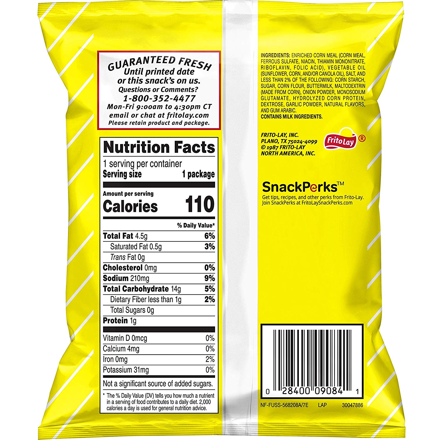 40 single serve favorites Lay's Classic Potato Chips, Crunchy Cheetos, Chili Cheese Fritos, Lay's BBQ Potato Chips, Original Funyuns, Doritos Nacho Cheese, Original Fritos, and Ruffles Cheddar & Sour Cream Chips