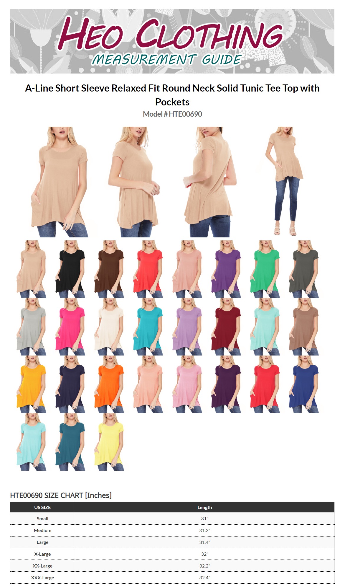 A chic and versatile tunic top featuring a round neck, short sleeves, waist pockets, and an asymmetrical hem. Made from a soft jersey knit, it's ideal for casual outings, work, or special occasions. Crafted from 95% rayon and 5% spandex for comfort and style.