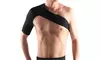 Shoulder Brace conforms to the shape of your body to provide comfortable, uniform compression. It's ideal for everyday and athletic wear. It traps your body's heat and increases circulation to the area, which helps keep your muscles warm during exercise. It also guards against injury during activities with extensive shoulder movements, so you can comfortably shoot a layups in a pickup basketball game or slam your way to first place in a fly swatting tournament. It provides even support through the arm and shoulder, even over extended periods of wear.HighlightsElastic and adjustableVelcro closureUnisexFits both left and right shoulderSuitable for most sports and athletic activitiesSuitable for sprains, strains, shoulder dislocation and arthritis painUseful where complete support and protection is requiredDesigned to help heal and prevent injuriesOne size fits most adults. Measure circumference from the corner of one shoulder to 6” below underarm of the other shoulder. Fits up to 52".Material: Neoprene