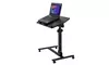 Bullet Points:- Tilted table top option for comfortable typing or writing with modern elegant and graceful condition.- Table height is adjustable from 24"-35.5", dual surface with ergonomically-positioned pad table matches to any wireless mouses.- 4 lockable omni-directional casters make it both mobile and stationary.- Safety edge-stopper to prevent objects from sliding off when the panel is tilted.- Ideal for working with your laptop or tablets beside beds or sofas, or as a movable workstation when giving a presentation at the office.