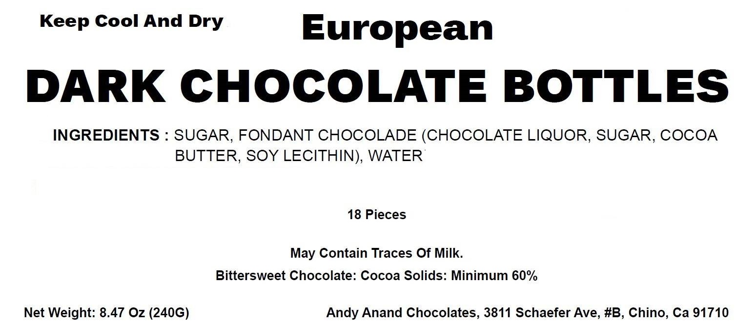- Included in the box: 18 Pcs European Dark Chocolate Bottles