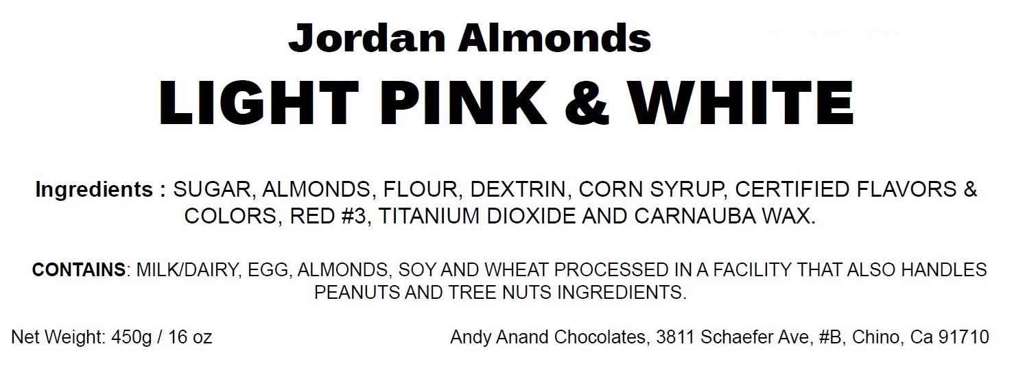 Andy Anand Jordan Almonds It is a Girl Light Pink & White Gift Boxed Box Packaging 1 lbs