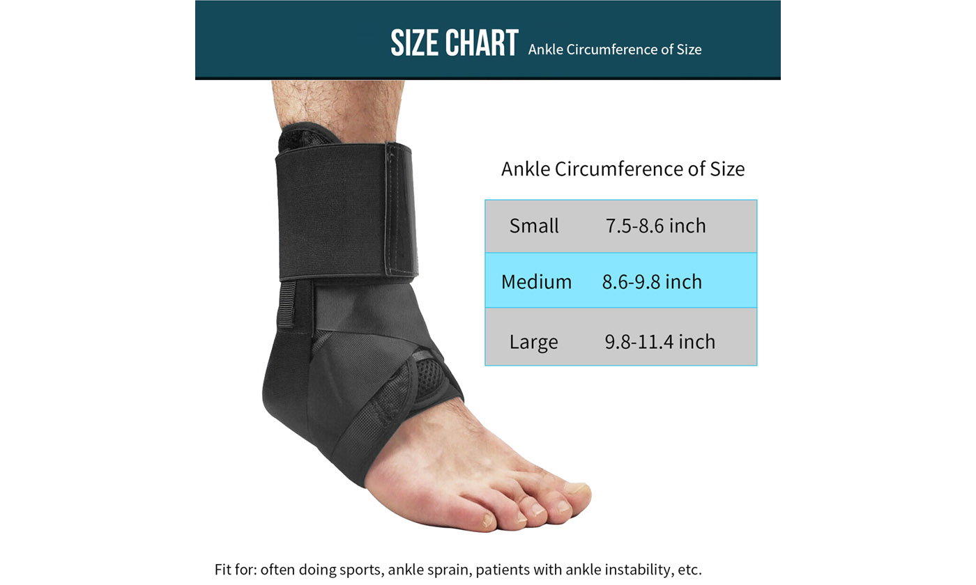 Specifications:Material: Oxford + Leather Optional Size: S / M / L Quantity: 1 pieces, NOT a pair (left or right, the same)Ankle Circumference of Size S: approx. 19-22 cm / 7.48-8.66 inchesAnkle Circumference of Size M: approx. 22-25 cm / 8.66-9.84 inchesAnkle Circumference of Size L: approx. 25-29 cm / 9.84-11.42 inchesFit for: often doing sports, ankle sprain, patients with ankle instability, etc.Features:1. Premium material, easy to put on and off, you can wear it for a long time.2. With wide ankle strap to fit snugly around a wider range of leg sizes.3. Bidirectional compression winding design, lifting and fixing, more secure protection.4. With Upgrade anti-sticking shoelace, perfect match Velcro, more convenient to adjust the tightness.5. Light weight and easy to use, it helps you stretch out the plantar fascia.Kindly Notes:*Please take proper measurement and compare the details before you buy.*Due to the lighting and screen settings, the real color may slightly different from the picture.*Please allow slight size differences due to different manual measurement.