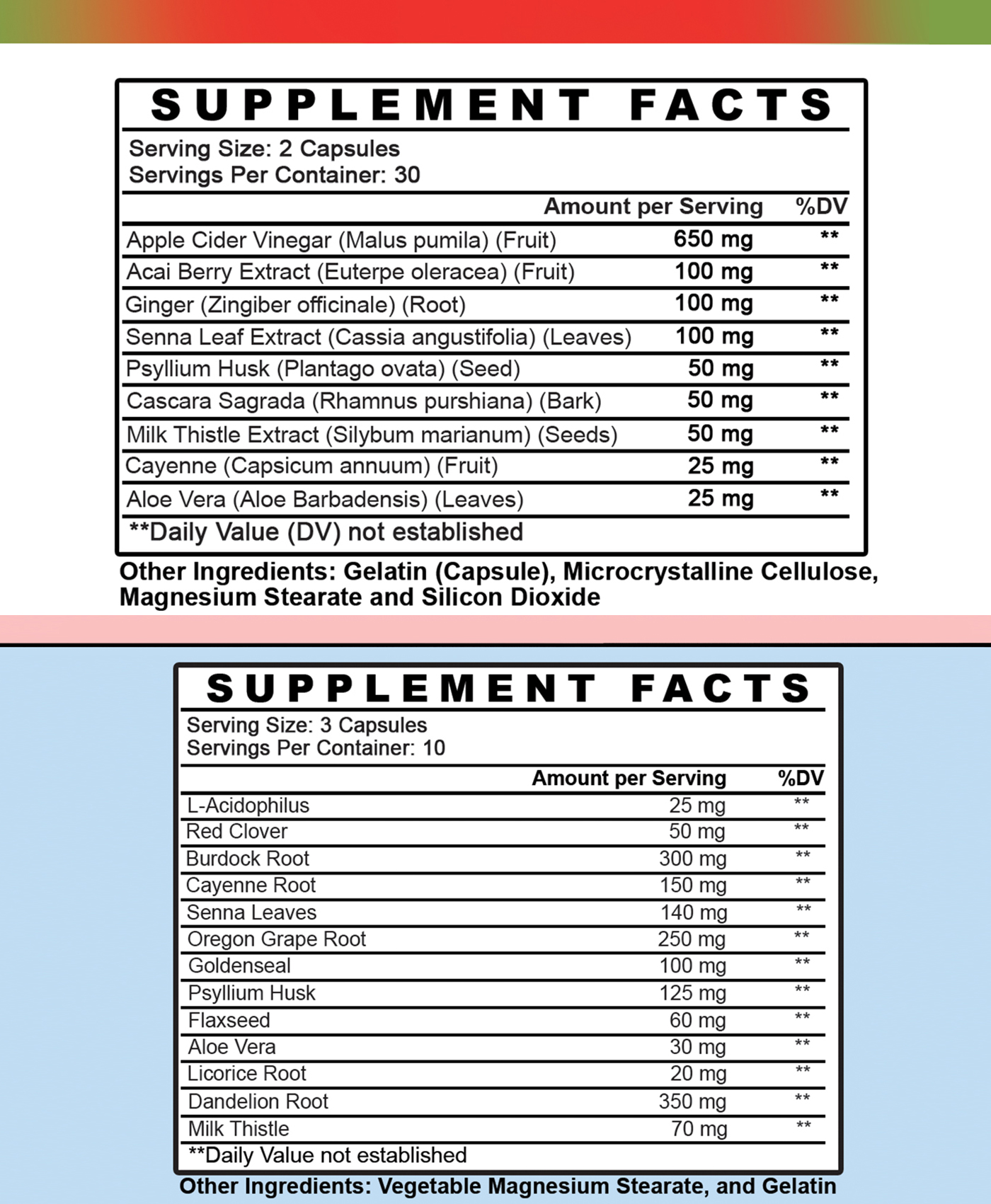 Apple Cider DetoxPotential Benefits:• Helps boost your metabolism naturally and suppress your appetite• Supports diet and weight loss efforts to burn fat • Works to break down carbs and sugar• Promotes heart health and cholesterol support• Includes Ginger and Acai to act as an all-natural anti-oxidant 10 DAY HAPPY COLON CLEANSE: 30ct/10-Day SupplyPotential Benefits:• Designed to be a gentle 10-day colon cleanse and detox• Includes probiotics to support intestinal health and improve digestion• May cause quick weight loss by rapidly reducing your water weight• May help relieve constipation• Increases energy• All-Natural and NON-GMO ingredients