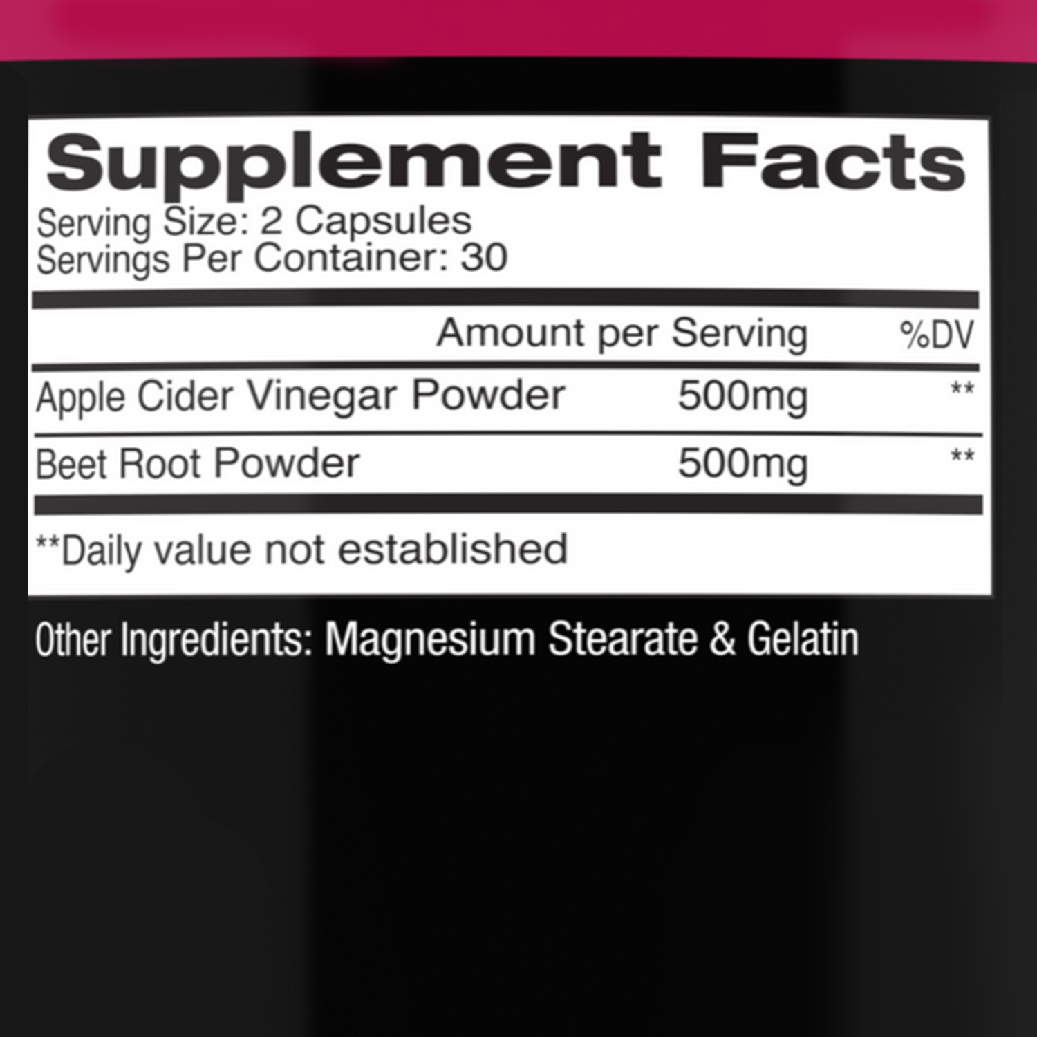 - Apple Cider Vinegar + Beet Root Maxx – 60 capsules per bottle (take 2 daily)