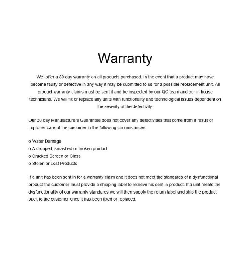- Warranty: 30 days parts-and-labor warranty provided by Vendor.