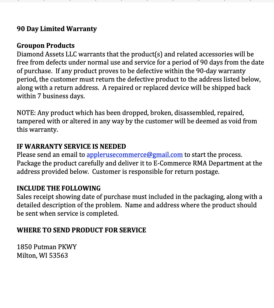 - This item is sold through the Apple R Us operated by Diamond Assets.