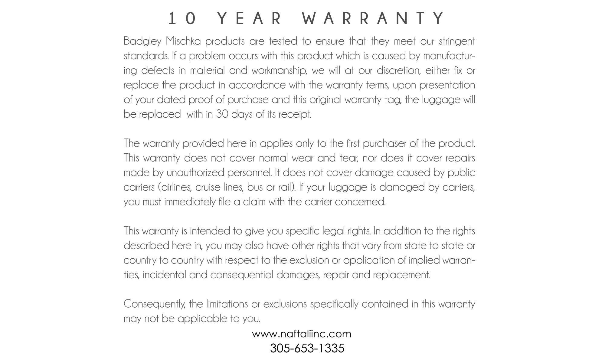 - Warranty: 10 years parts warranty provided by Naftali.