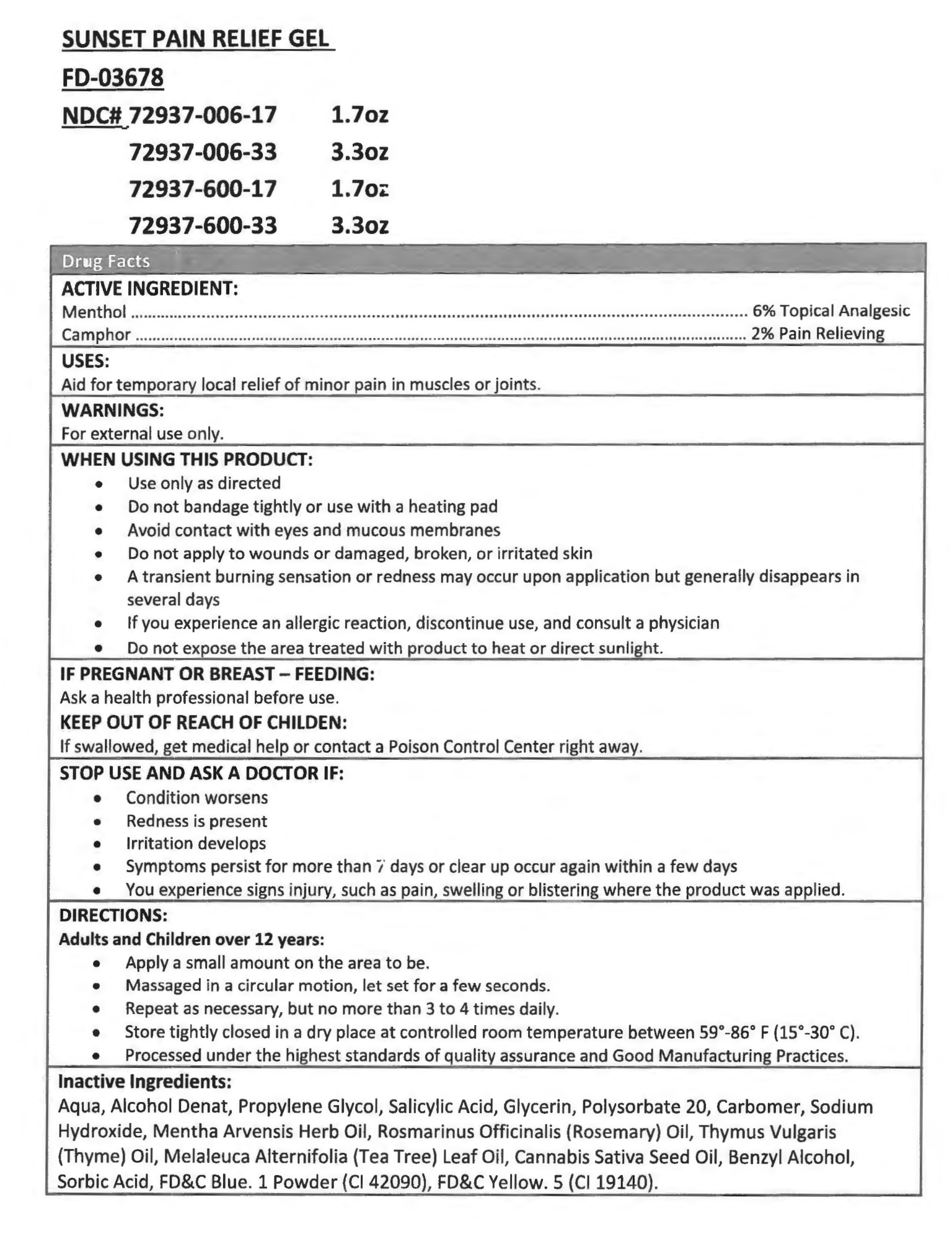 - Nutrition Facts & Ingredient Label: Menthol 6%, Camphor 2%. Inactive Ingredients: Aqua, Alcohol Denat, Propylene Glycol, Salicylic Acid, Glycerin, Polysorbate 20, Carbomer, Sodium Hydroxide, Mentha Arvensis Herb Oil, Rosmarinus Officinalis (Rosemary) Oil, Thymus Vulgaris (Thyme) Oil, Melaleuca Alternifolia (Tea Tree) Leaf Oil, Cannabis Sativa Oil, Benzyl Alcohol, Sorbic Acid, FD&C Blue #1 Powder (CI 42090), FD&C Yellow #5 (CI 19140).