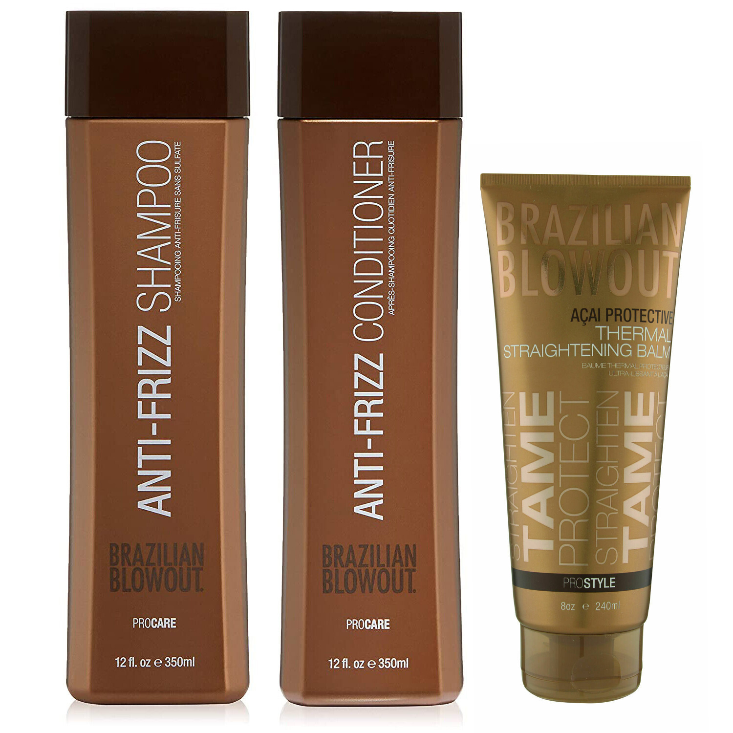 - Product Size: Brazilian Blowout Acai Anti Frizz Shampoo and Conditioner 12 oz with Ionic Bonding Hair Spray Step 3, 3.4 oz