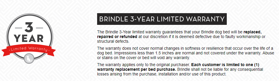 - Warranty: 3 years parts-and-labor warranty provided by Brindle.