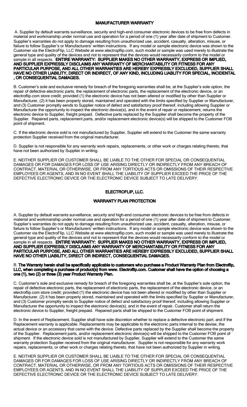 - Warranty: 1 years parts-and-labor warranty provided by ElectroFlip.