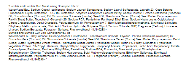 Bumble and Bumble Curl Moisturizing Shampoo 8.5 ozThis moisturizing, curl-loving gentle cleanser is now enhanced with a rich blend of oils (Avocado, Coconut, Jojoba) and butters (Shea, Cocoa) – to leave hair shiny, deeply hydrate, and reduce frizz. Plus, it’s a non-stripping, color-safe shampoo that’s free of sulfate cleansers. Bumble and Bumble Curl 3in1 Conditioner 6.7 ozThis moisturizing conditioner can be used three different ways: as a rinse-out, leave-in, or co-wash. Now enhanced with a rich blend of oils (Avocado, Coconut, Jojoba) and butters (Shea, Cocoa) – to leave hair shiny, deeply hydrate, and reduce frizz. Color-safe.Excluding returns for product defects, a returned item must be in new or unused condition, with all original materials included with the shipment. Refunds will not be given for items returned that do not meet these requirements.