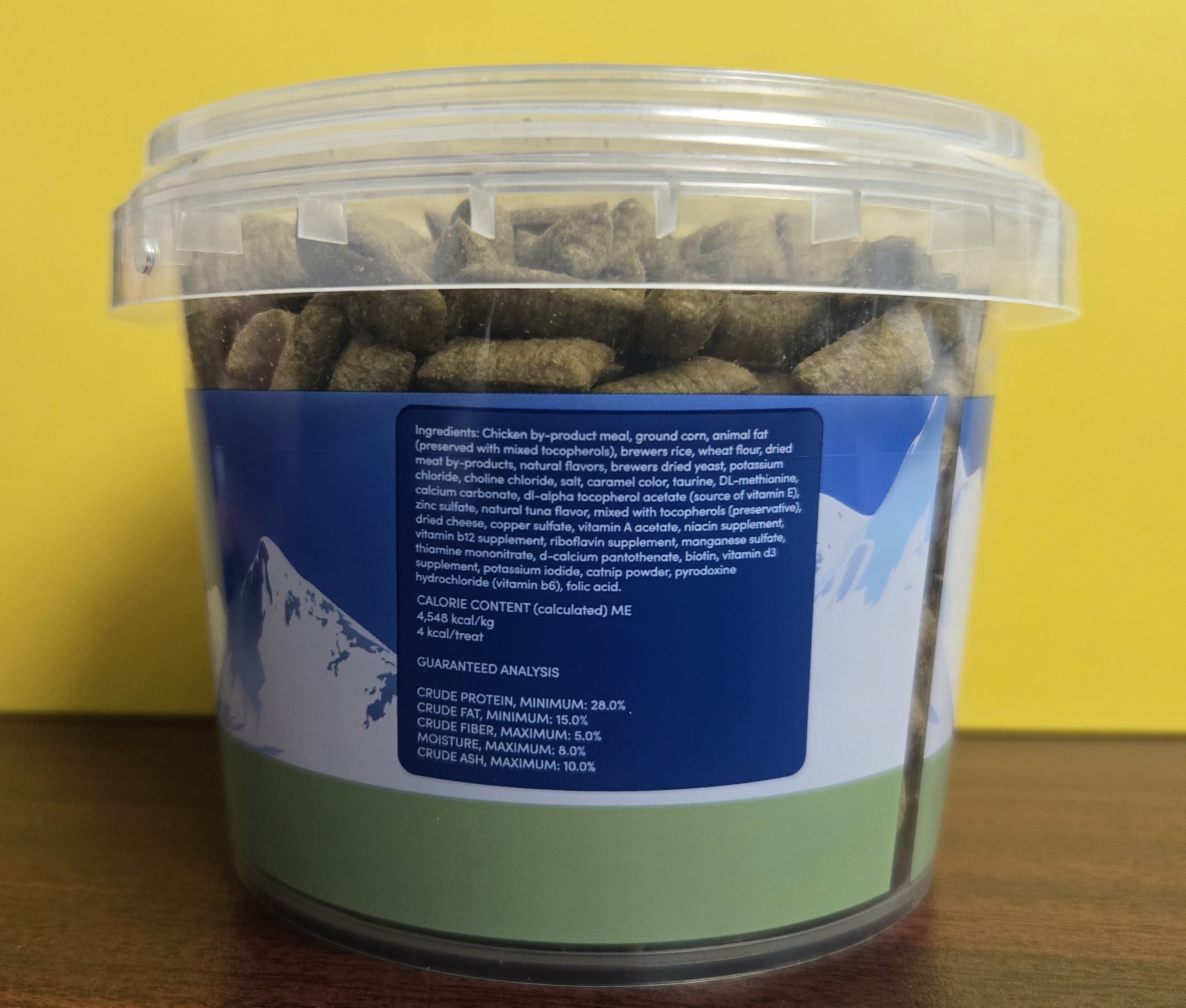 - Included in the box: One 8.8 ounce tub of cat treats.