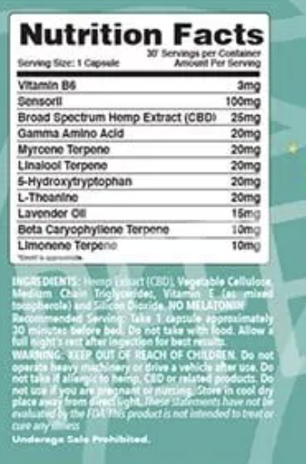 - Serving Size in Milligrams: 25MG per capsule
