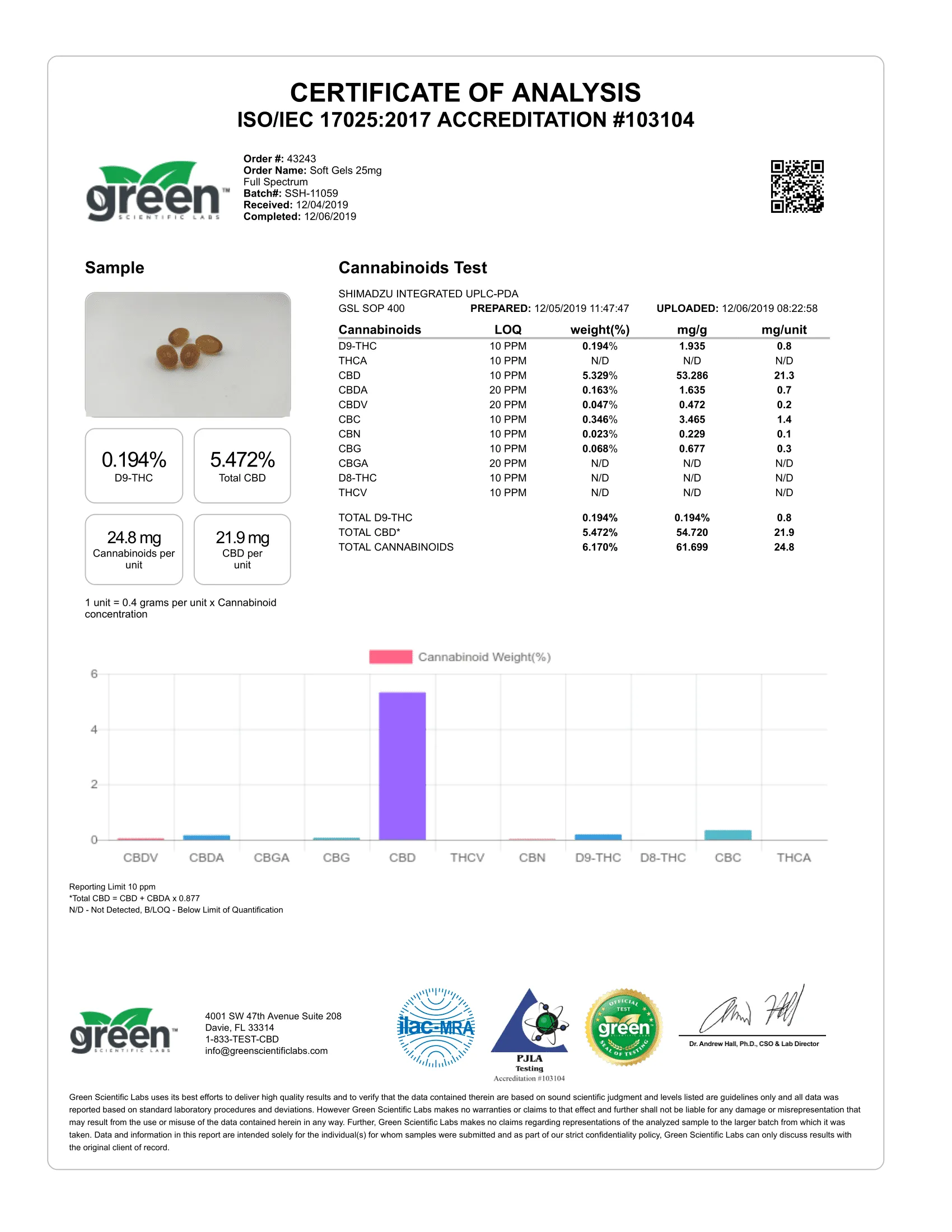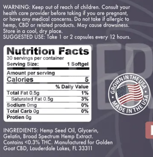 Our Full Spectrum CBD Gel Capsules are easy to take and easy on the pallet. Each capsule has 25mg of cannabinoids and is certified for potency. 30ct. Choose Broad Spectrum or Full Spectrum.Full Spectrum CBD, unlike Broad Spectrum, contains more elements found in the hemp plant, not just CBD, providing a variety of natural cannabinoids derived from organically-grown hemp.Potential Benefits:- Convenient pill form.- Infused with non-GMO organic hemp-derived CBD.- Contains unsaturated fats extracted from the plant.The Food and Drug Administration (FDA) has not evaluated this statement. This product is not intended to diagnose, treat, cure or prevent any disease. Should not be used by pregnant or breastfeeding women, as its use may pose potential harm. Hemp stalk derived.**Please Consume Responsibly**FDA Disclaimer:This statement has not been evaluated by the Food and Drug Administration (FDA). This product is not intended to diagnose, treat, cure or prevent any disease.THC Content:Hemp stalk derived. This product contains less than 0.3% delta-9 THC.Age Limit:Must be 21 or older to purchase and redeem. By purchasing this you are declaring that you are 21 years of age or over.KEEP PRODUCTS OUT OF THE REACH OF CHILDREN AND PETS.Should not be used by women who are pregnant or breastfeeding, as its use may pose potential harms.In case of accidental ingestion, contact the national poison control hotline at 1-800-222-1222 or 9-1-1.Please Consume Responsibly.State Restrictions: The following states prohibit the shipping of hemp and hemp-derived products: Canada, Puerto Rico, AK, HI, SD, ID, NE, or any PO Boxes