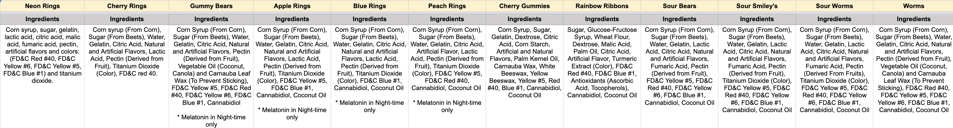 - Serving Size in Milligrams: Contains less than 0.3% THC