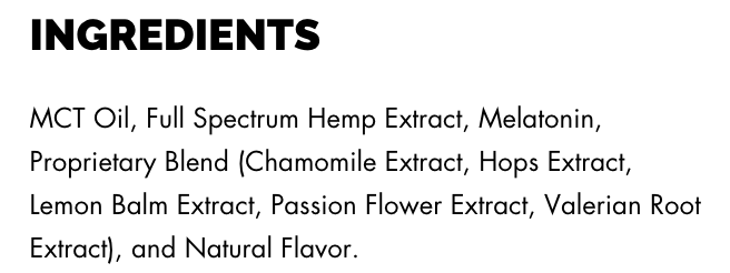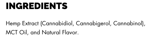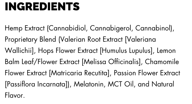 - Serving Size in Milligrams: 200MG CBD + 25MG CBN + 25MG CBG