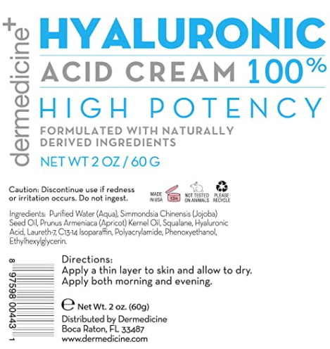 Dermedicine 100% Hyaluronic Acid High Potency Anti-Aging Cream (2 Oz.)