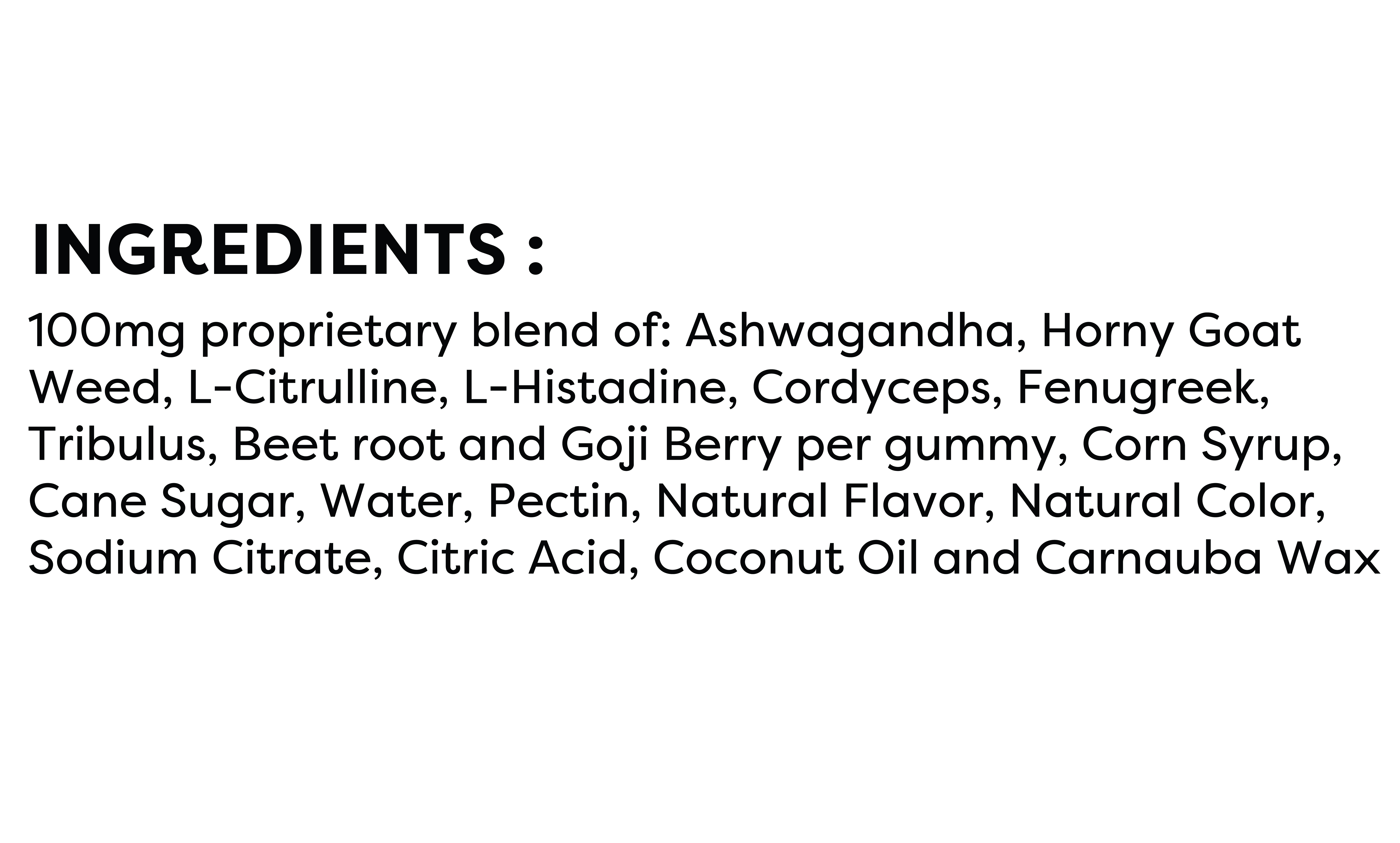 Unleash Your Performance Potential with Dil Nutrition's Men's Performance Gummies - MADE IN USAAre you ready to take your performance to new heights and embrace your full masculine potential? Look no further than Dil Nutrition's Men's Performance Gummies. Specially formulated with a powerful blend of carefully selected ingredients, these gummies are designed to fuel your energy, enhance endurance, and elevate your overall performance.Each gummy is packed with a precise blend of performance-enhancing compounds, including Ashwagandha, Horny Goat Weed, Cordyceps, Fenugreek, Tribulus, Beet Root, and Goji Berry. This powerful combination of natural ingredients works synergistically to boost your energy levels, promote vitality, and support overall performance. Ashwagandha, known for its adaptogenic properties, helps the body manage stress and promotes overall well-being. Cordyceps, a renowned mushroom extract, supports energy production and physical performance. Goji Berry is a superfood packed with antioxidants to help protect your cells from oxidative stress. Horny Goat Weed has been used for centuries to support female vitality and reproductive health. Experience a surge of vitality and stamina that propels you through your workouts, fuels your daily activities, and helps you perform at your best in all areas of life. Our Men's Performance Gummies provide the essential nutrients your body needs to excel, enabling you to go the extra mile and achieve remarkable feats. But it's not just physical performance that matters – mental focus and clarity are equally important. That's why we've included brain-boosting ingredients like Ashwagandha and Cordyceps to sharpen your cognitive function, enhance mental clarity, and keep your mind in the zone when it counts.Join the ranks of high-performing men who rely on Dil Nutrition's Men's Performance Gummies to unleash their true potential. Ignite your performance, elevate your endurance, and surpass your own expectations with our cutting-edge gummies. Please note: While Dil Nutrition's Men's Performance Gummies offer potential benefits, it's always advisable to consult with a healthcare professional for personalized advice, especially if you have specific medical conditions or concerns.The Men's Performance Edibles by Dil Nutrition are a Vegan friendly, formula that may naturally increase blood flow and boost testosterone levels nestled in a tasty gummy. 100mg proprietary blend of Ashwagandha,Horny Goat Weed,L-Citrulline,L-Histadine,Cordyceps,Fenugreek,Tribulus,Beet Root and Goji Berry This statement has not been evaluated by the Food and Drug AdministrationThis product is not intended to diagnose, treat, cure, or prevent any disease.Suggested UseEat 1 gummy per dayMade in USAAge Limit: Must be 21 or older to order and receive this product. By placing an order for one of these items you are declaring that you are 21 years of age or over. KEEP PRODUCTS OUT OF THE REACH OF CHILDREN AND PETS. Should not be used by women who are pregnant or breastfeeding, as its use may pose potential harms. In case of accidental ingestion, contact the national poison control hotline at 1-800-222-1222 or 9-1-1. Please Consume Responsibly.