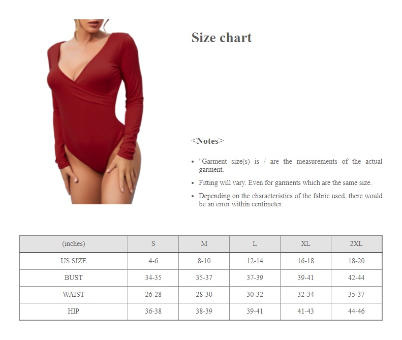Doublju Women's Deep V-Neck Long Sleeve Surplice Wrap Bodysuit Red S (4-6)