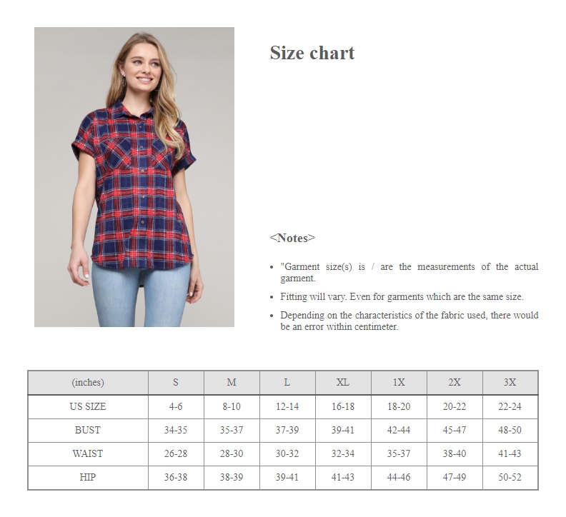 Doublju Women's Short Sleeve Plaid Flannel Shirts with Plus Size NAVYREDMCK S (4-6)