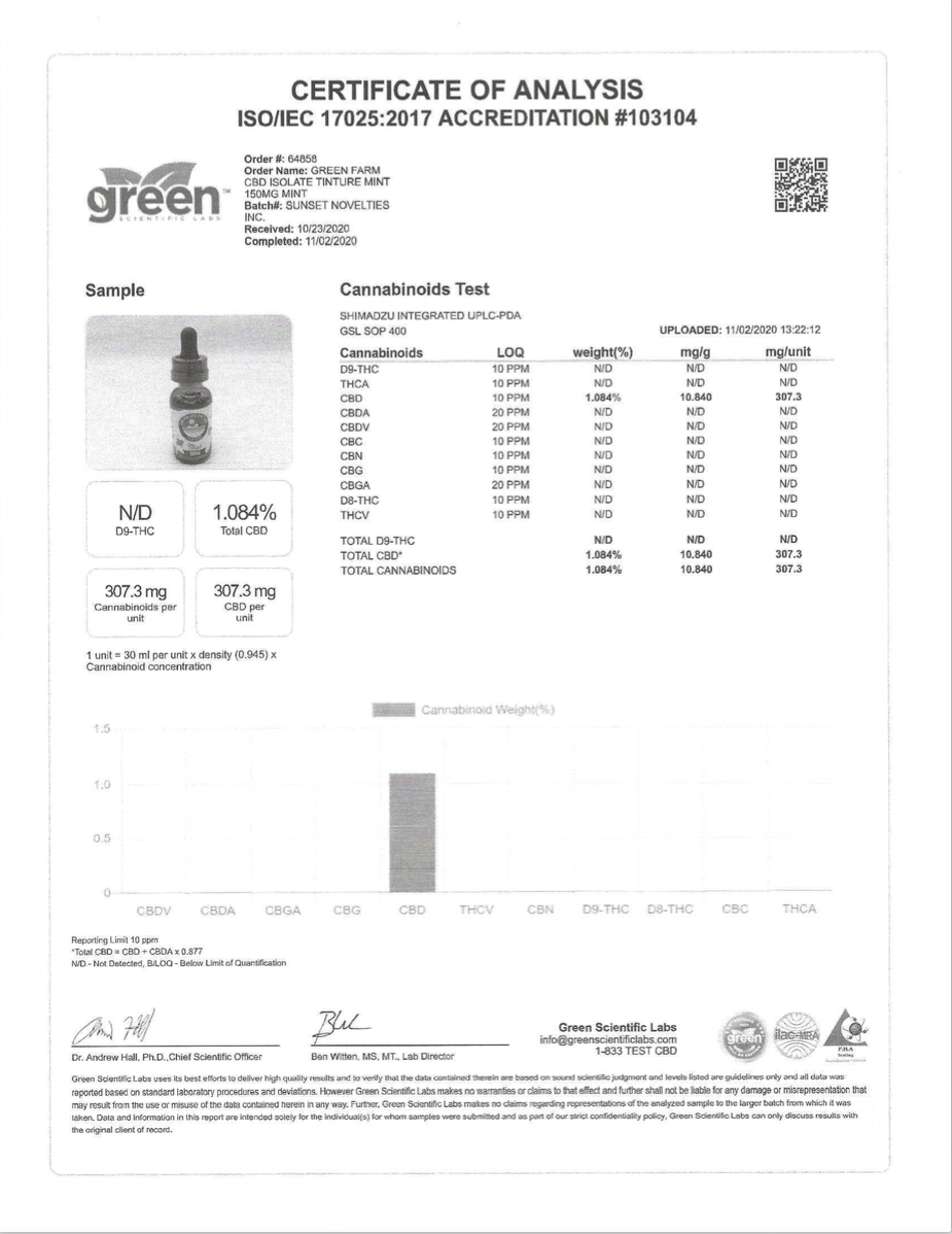 Extra Potent CBD Isolate Oil Tinctures from Green Farm (NATURAL or MINT) MINT 150MG