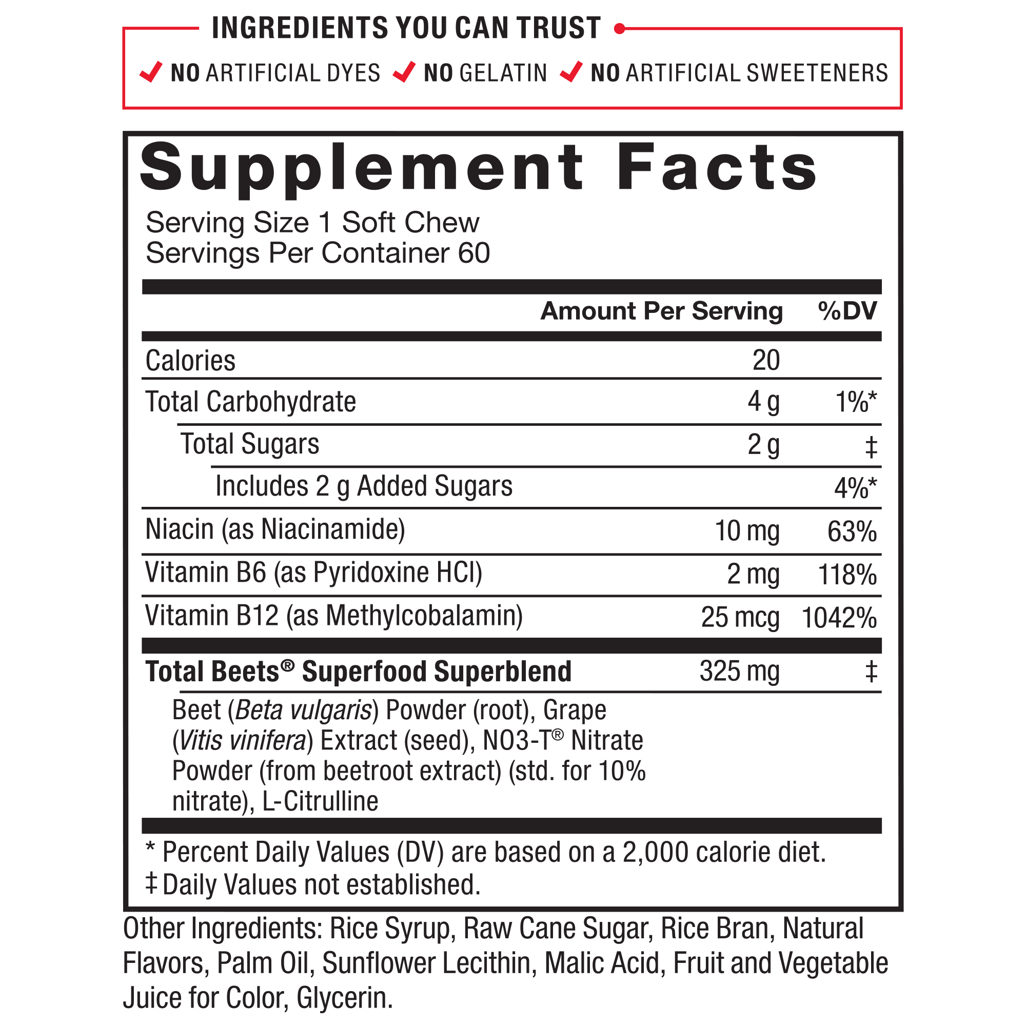 Force Factor Total Beets Concentrated Beet Root Soft Chews, Circulation Support