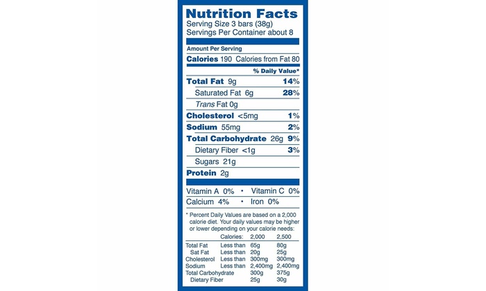 - Ingredients: Sugar, roasted peanuts, corn syrup, hydrogenated palm kernel oil, cocoa, molasses, whey, salt, soy lecithin, cornstarch, confectioner’s glaze, monoglycerides, nonfat milk, natural flavors, TBHQ