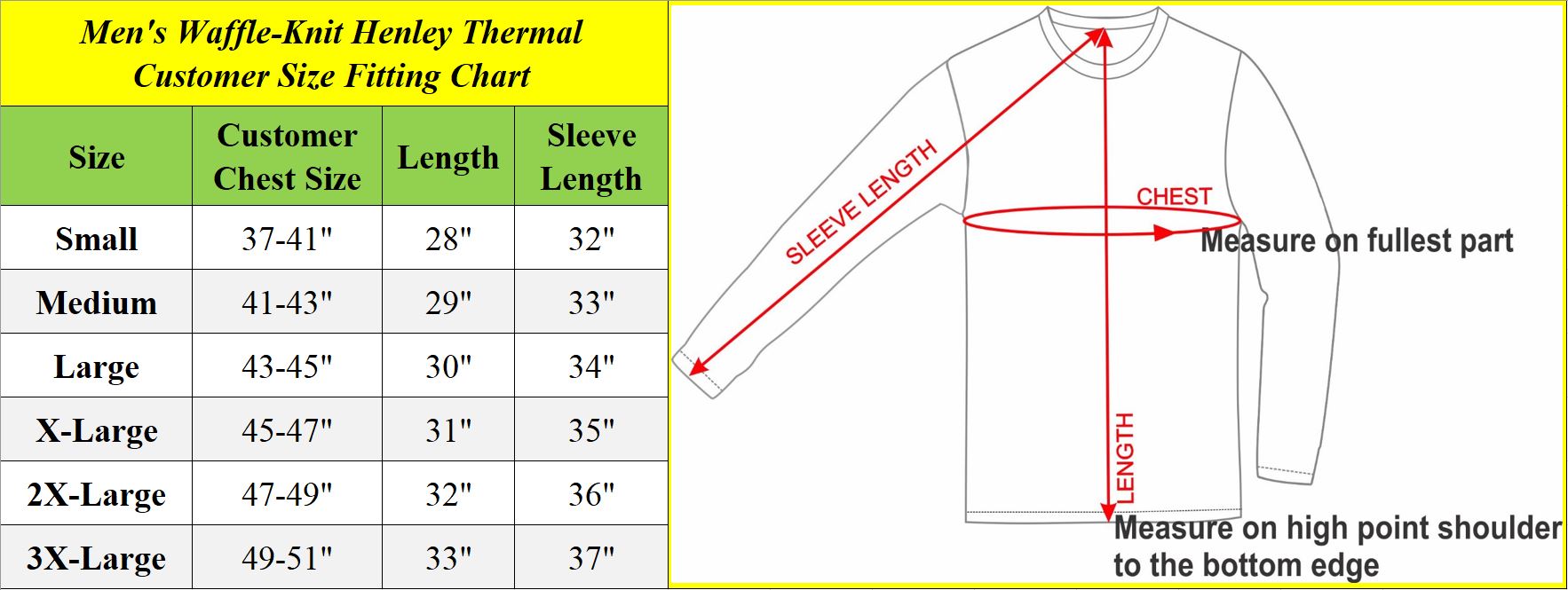 Waffle-Knit Thermal Henley ShirtStay Warm with This Henley Thermal Shirt Unique Waffle Knit Thermal Design for Extra Warmth Regular-Fit Design Long Sleeve 3-Button Henley Reinforced Neck Line Double Stitched Hem Elasticized Sleeve Cuffs Imported Materials: 60% Cotton, 40% Polyester Care Instructions: Machine Wash Cold