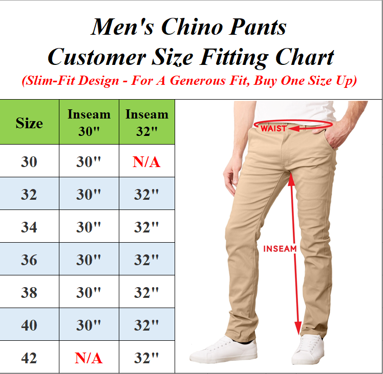 Galaxy By Harvic Men's Slim Fit Cotton Stretch Chino Pants Khaki 40x32