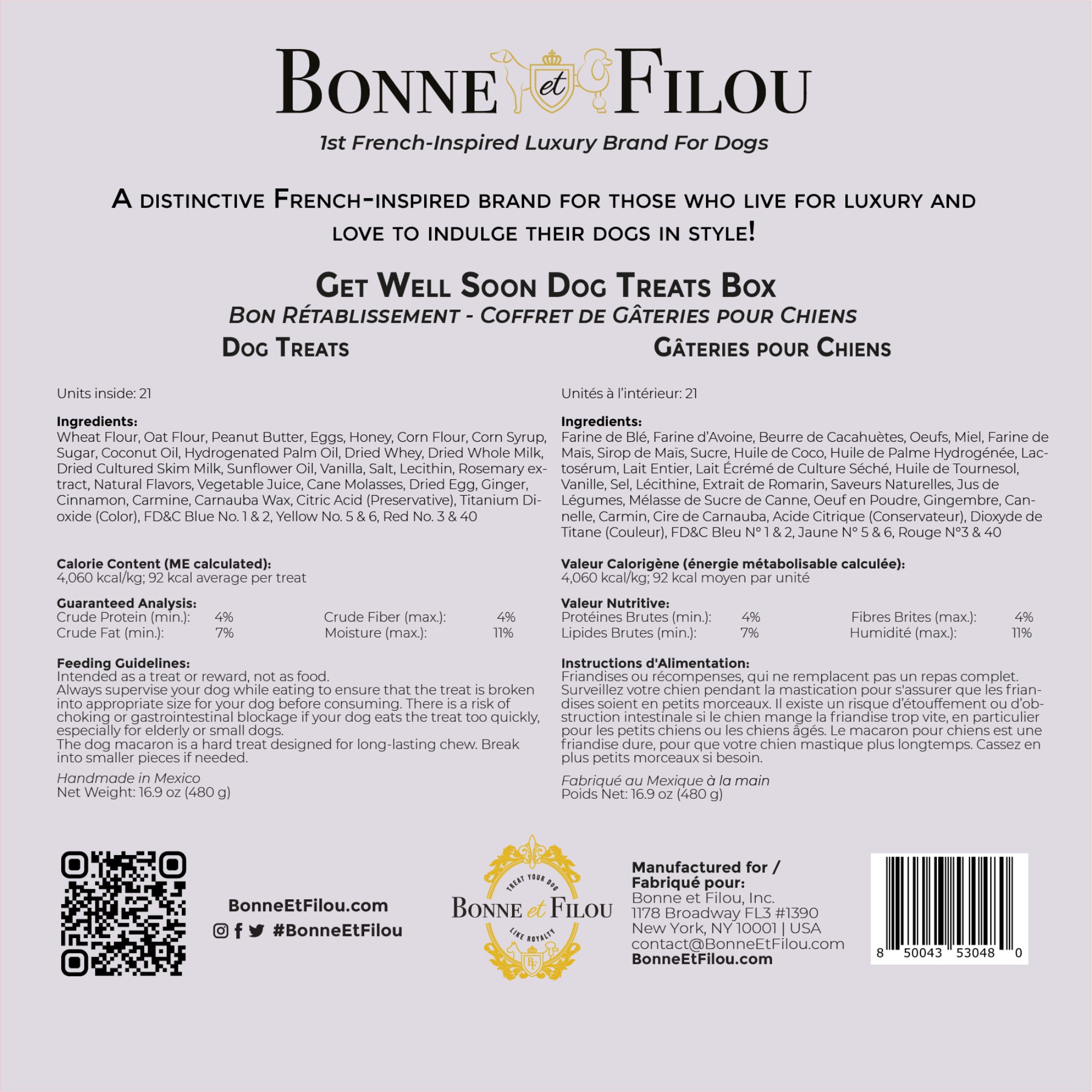 If you're looking for a special way to show your dog just how much you care, the Get Well Soon Dog Treats Gift Box with delicious treats and beautiful packaging is just what the doctor ordered!