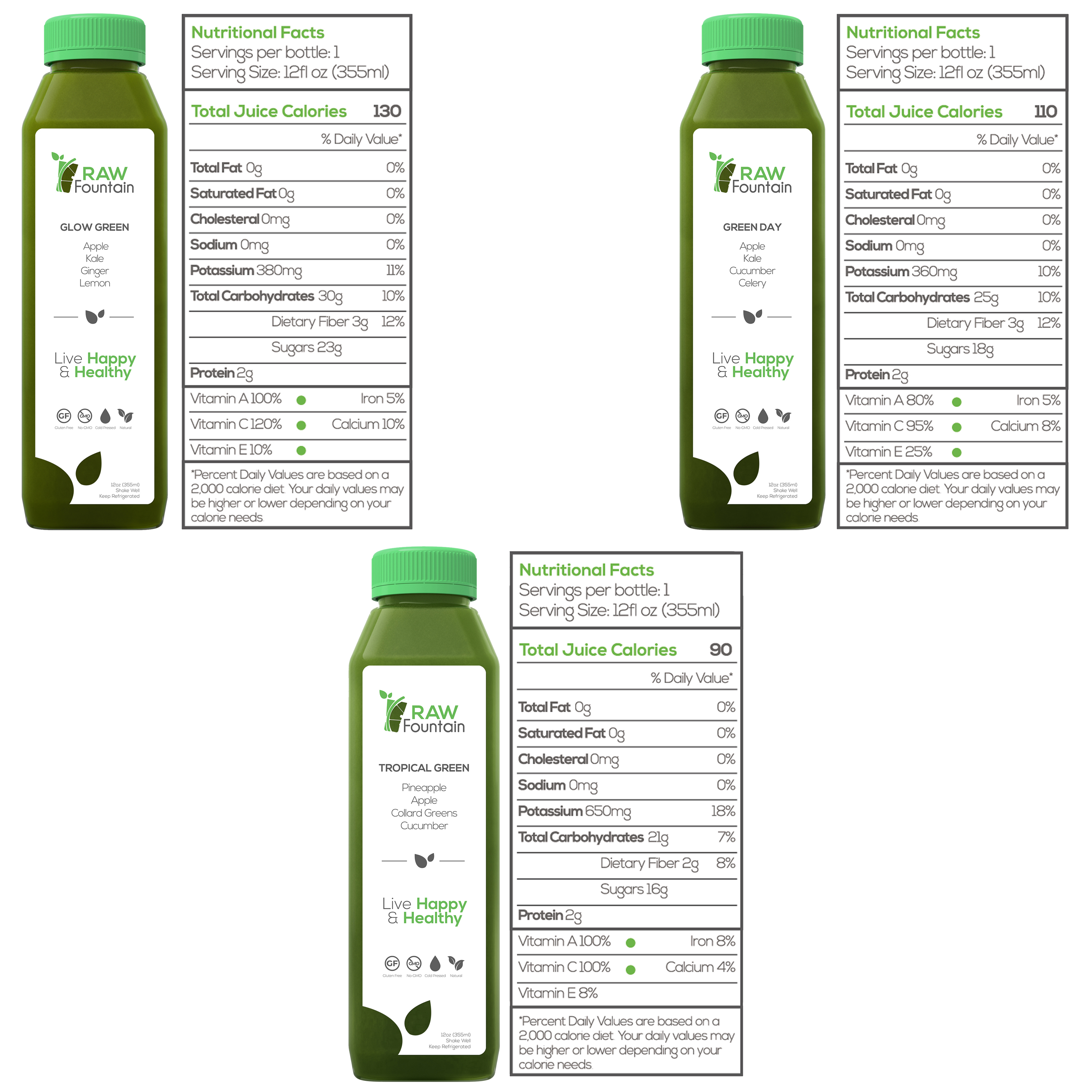 - Raw Fountain juices are made from 100% FRESH produce.