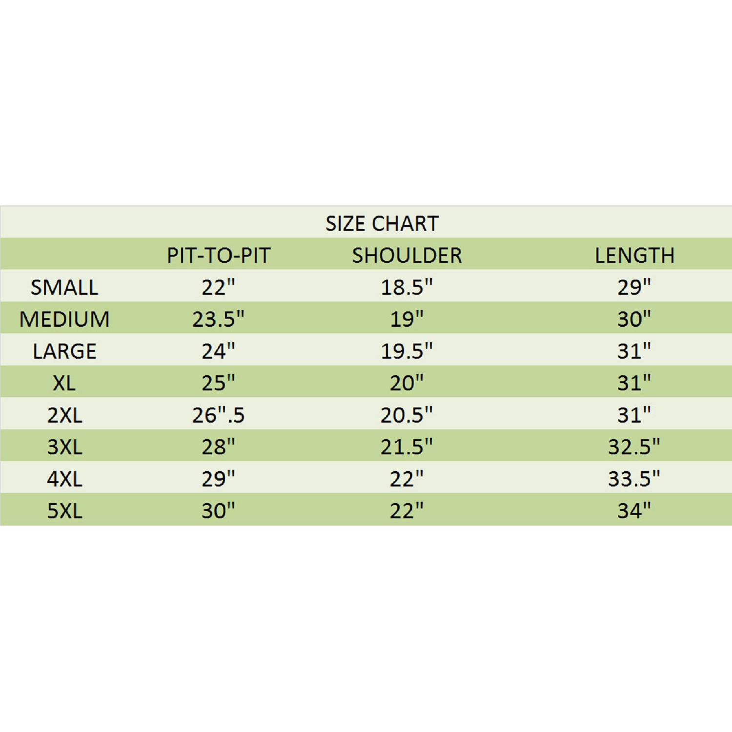 - Sizing Chart: Custom