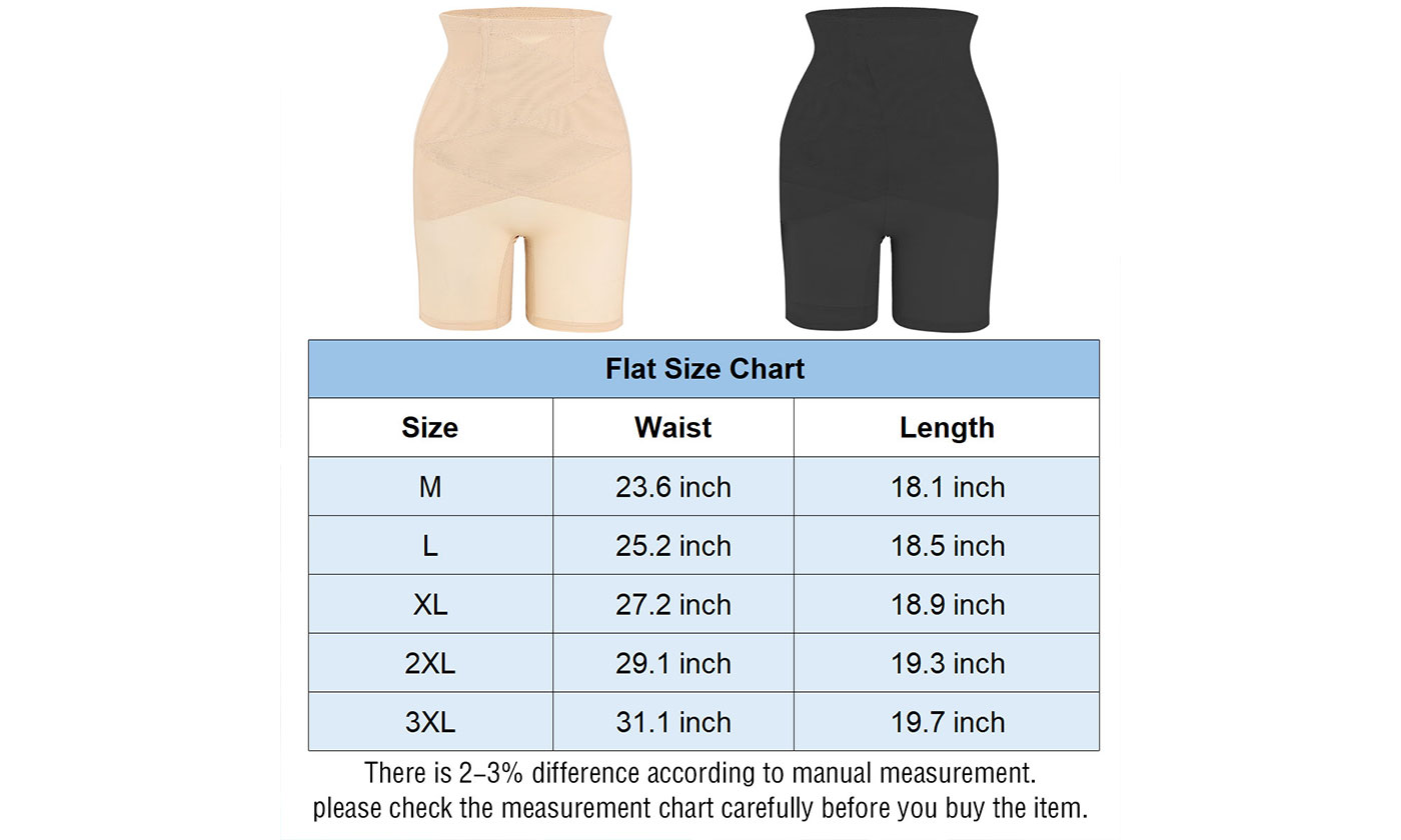 Specifications:Material: 88% Nylon, 12% SpandexOptional Color: Black, SkinOptional Size: M, L, XL, 2XL, 3XLRise: High RisePattern: MeshFeatures:· Breathable & Sexy Women’s Mesh Shapewear Underwear: This elegant shaping underwear is made of soft, elastic and breathable mesh fabric and features a beautiful crossed design at its front, sexy and stylish.· Flatten Your Tummy & Slim Your Waist: The shaper underwear provides extra coverage on your waist and has a good compression that can nicely flatten your tummy.· Lift Your Butt & Shape Your Hips: The shapewear panty is of increased compression at its thighs that can lift your butt and give your butt a flattering shape.· 4 Support Strips: There are 4 flexible support strips at its waist that nicely shape your waist and keep the panty in place.· Firm Stitches & Sturdy Seams: It is firmly stitched and seamed for a great sturdiness and durability.· Soft, Breathable & Comfortable: This shapewear underwear is made of soft, stretchy and breathable fabric that easy to put on and comfy to wear all day long.Notes:* Due to effect of light, camera and monitors, the item’s real color may be slightly different.* Allow slight dimension difference due to manual measurement.WARNING for California Residents:This product can expose you to chemicals including Diisononyl phthalate (DINP). For more information, go to:https://www.p65warnings.ca.gov/.