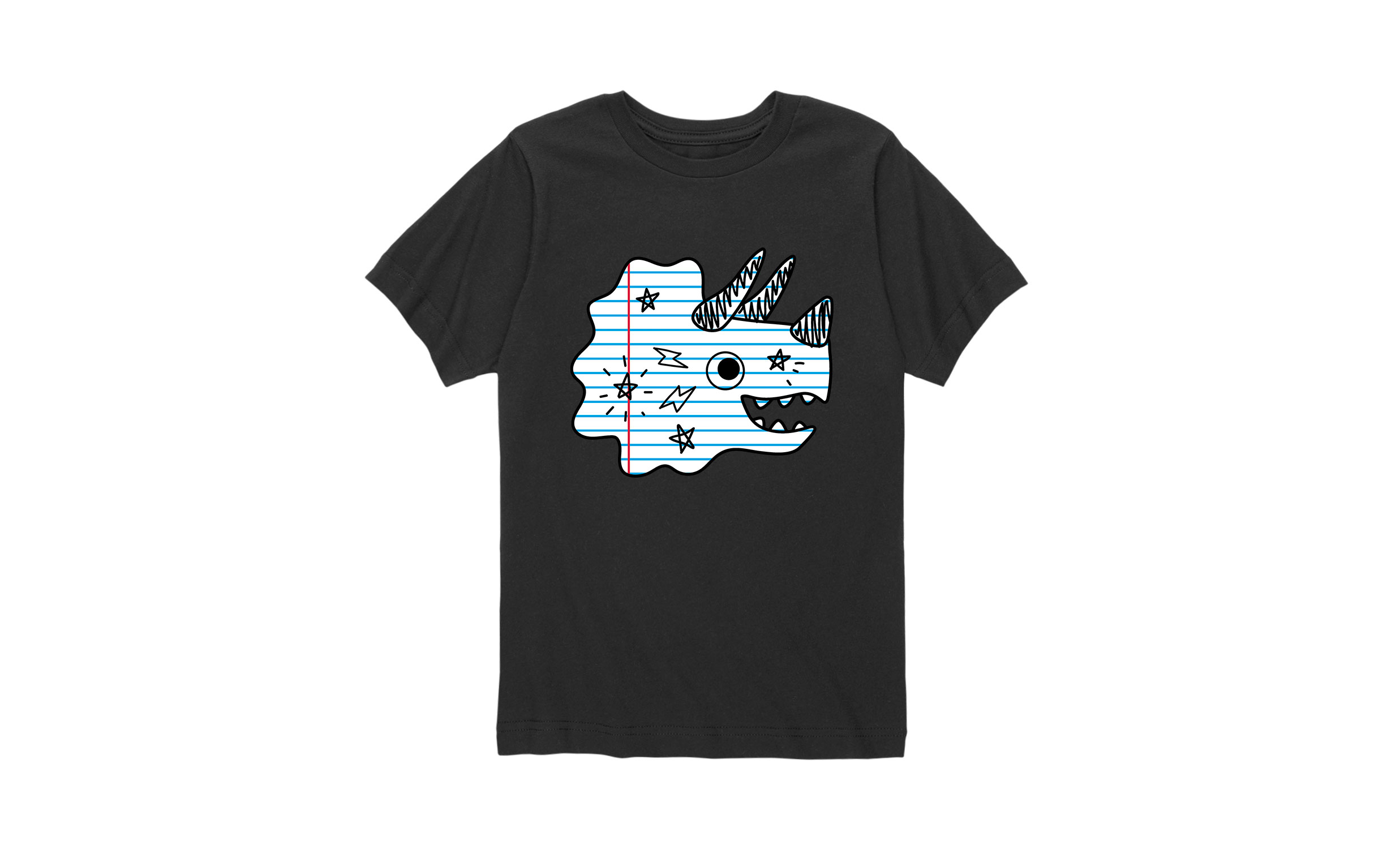 Instant Message: Playful Boys Back to School Tee Black-Notebook Paper Dinosaur Youth Small (6-8)