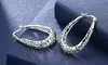 Italian Made 925 Sterling Silver Oval Filigree Hoop Earrings 18K White Gold Plated