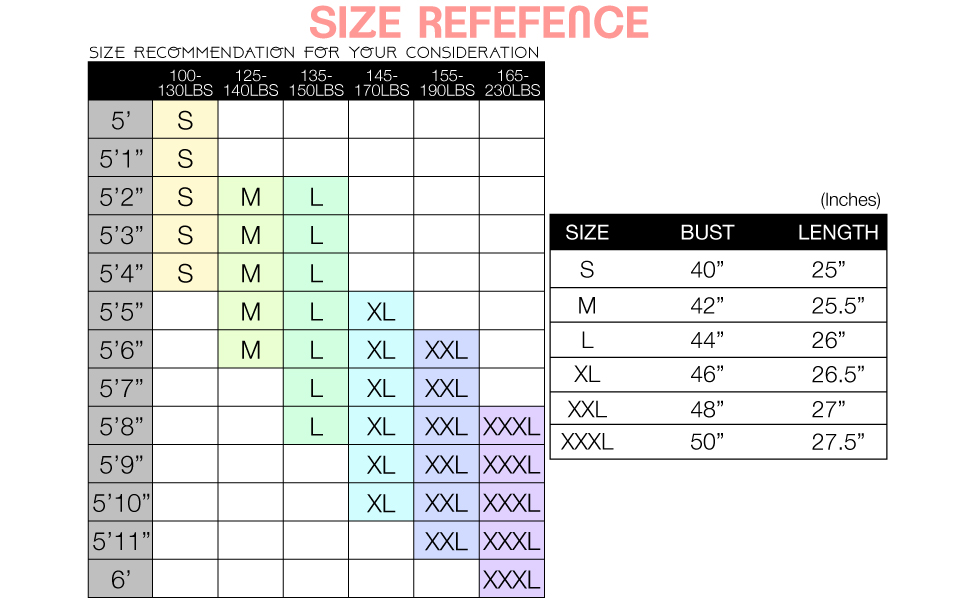 - Sizing Chart: Custom
