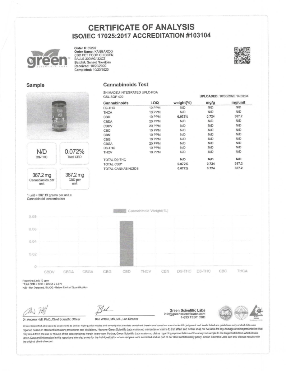 Mega Size 100% Organic CBD Infused Dog Treats 300MG (32oz) by Kangaroo CBD Chicken Balls N/A