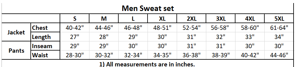 - Sweat jacket with 5 pockets: 2 jacket side pockets, 1 chest pocket, 2 pants side pockets, 1 pants back pocket