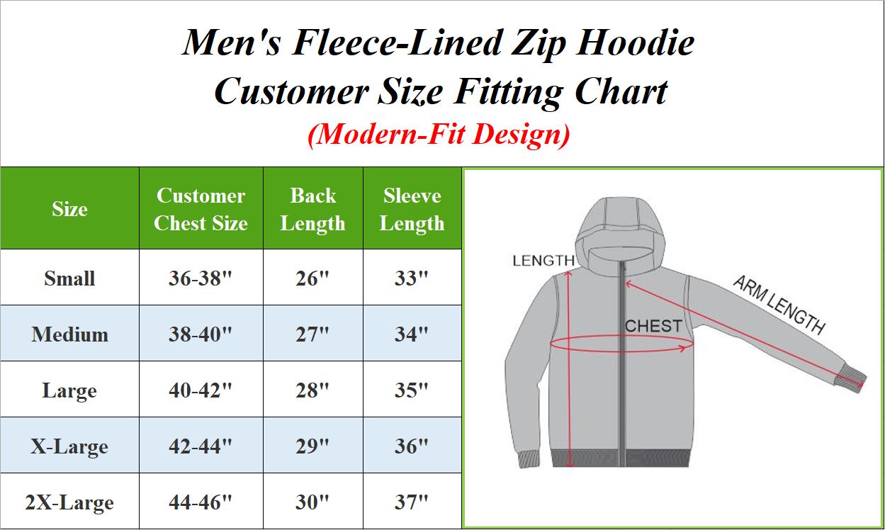 Men's Fleece-Lined Full-Zip Hoodie (Sizes, S-2XL)