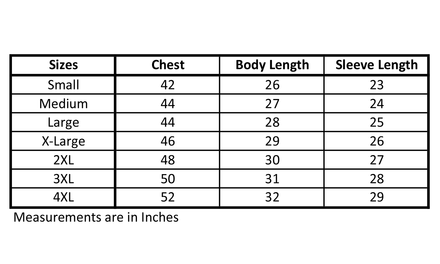 - Comes in sizes Small, Medium, Large, X-Large, 2X-Large, 3X-Large, and 4X-Large