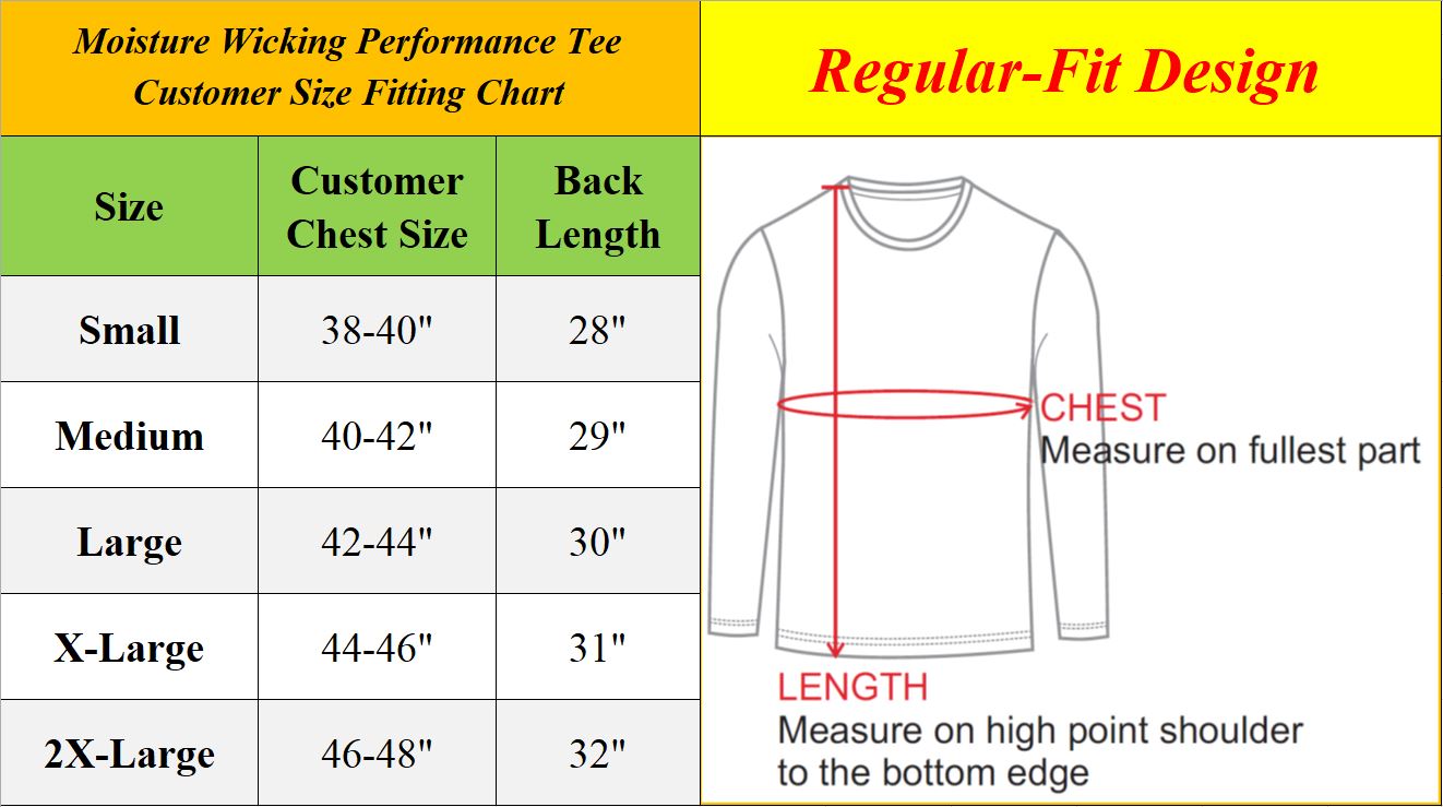 Long Sleeve Moisture-Wicking Crew Neck Tee Moisture Wicking Technology Allows You To Stay Cool And Dry Regular-Fit Design Crew Neckline Reflective Stripe Patch On Back Short Sleeve Wrinkle Free Odor Resistant Tag-Less For Comfort Double Stitched Hem Imported Material: 100% Polyester Care Instructions: Machine Wash Cold